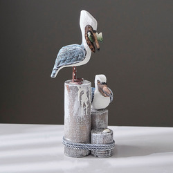 Escultura artesanal de madera accesorios para el hogar tallas de aves marinas de madera tocón de árbol de madera maciza pájaro decoración del hogar Mediterráneo ornamento